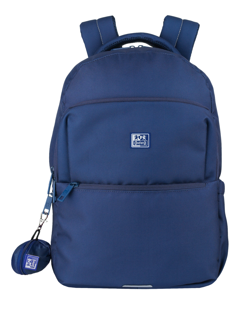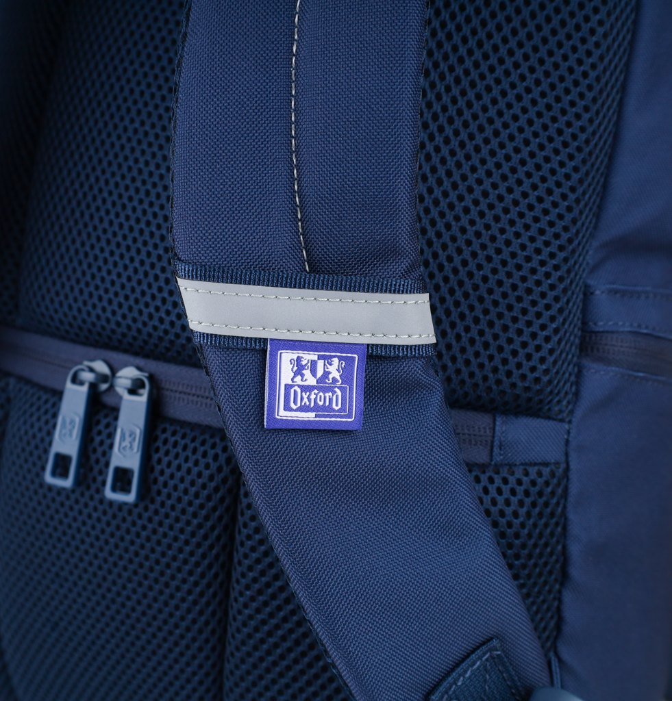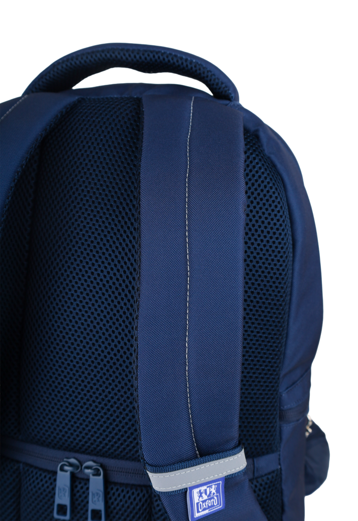 Batoh školní Oxford modrý velká hlavní přihrádka a vyztužená kapsa na notebook, menší kapsa vpředu a dvě boční. Zpevněné dno batohu. Vyztužená,…