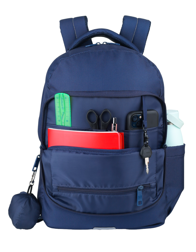Batoh Oxford 23 litrů, 30x42x15cm, prostorný a praktický batoh vhodný do školy, práce i na volný čas, speciální polstrovaná přihrádka na notebook pro bezpečné uložení počítače, tajná kapsa v zadní části u zad pro bezpečné uložení cenností, přední skrytá kapsa pro rychlý přístup k drobnostem, boční kapsa s pružnou gumičkou na láhev, reflexní prvky vpředu i vzadu pro vyšší bezpečnost, nastavitelné ramenní popruhy se zapínacími klipy pro pohodlné nošení, součástí kulatá bambule s integrovanou pláštěnkou, která celý batoh zakryje a ochrání před deštěm.