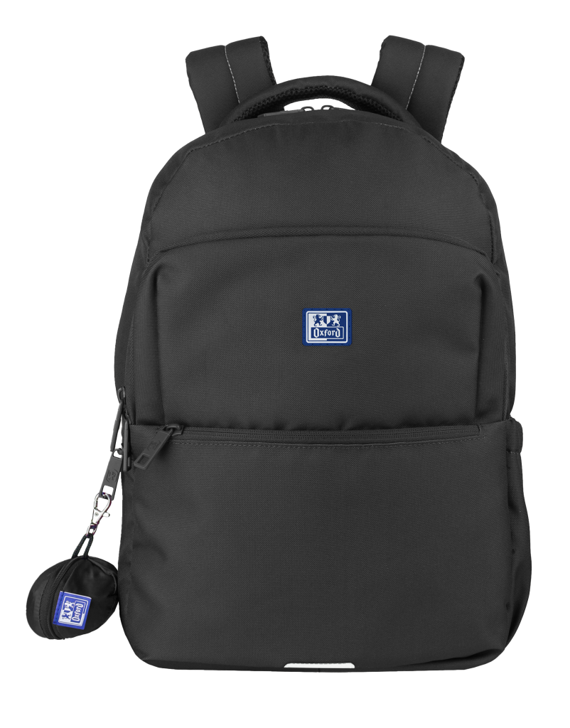 Batoh Oxford 23 litrů, 30x42x15cm, prostorný a praktický batoh vhodný do školy, práce i na volný čas, speciální polstrovaná přihrádka na notebook pro bezpečné uložení počítače, tajná kapsa v zadní části u zad pro bezpečné uložení cenností, přední skrytá kapsa pro rychlý přístup k drobnostem, boční kapsa s pružnou gumičkou na láhev, reflexní prvky vpředu i vzadu pro vyšší bezpečnost, nastavitelné ramenní popruhy se zapínacími klipy pro pohodlné nošení, součástí kulatá bambule s integrovanou pláštěnkou, která celý batoh zakryje a ochrání před deštěm.
