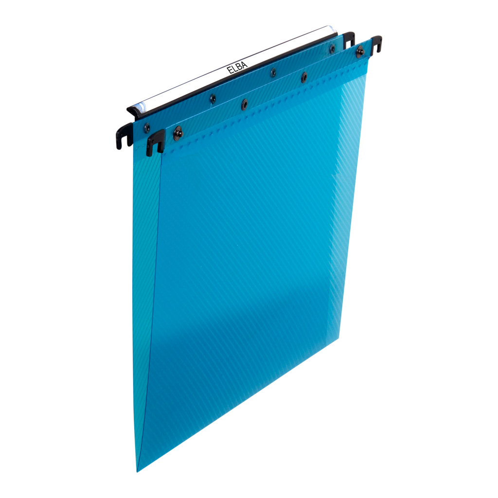 Desky závěsné A4 Elba Polypro modré typ V, PP, vyrobeno ze silného polypropylenu, kovový druk, velký držák štítků, nahoře svařené, 10 kusů, kapacita 100 listů