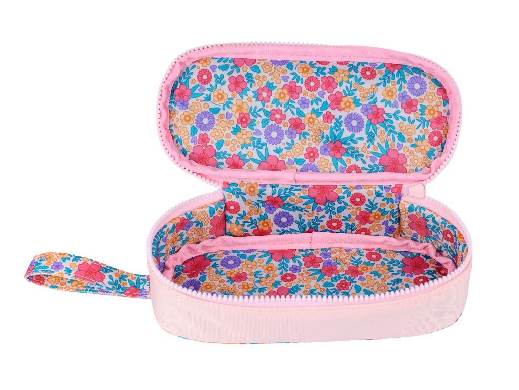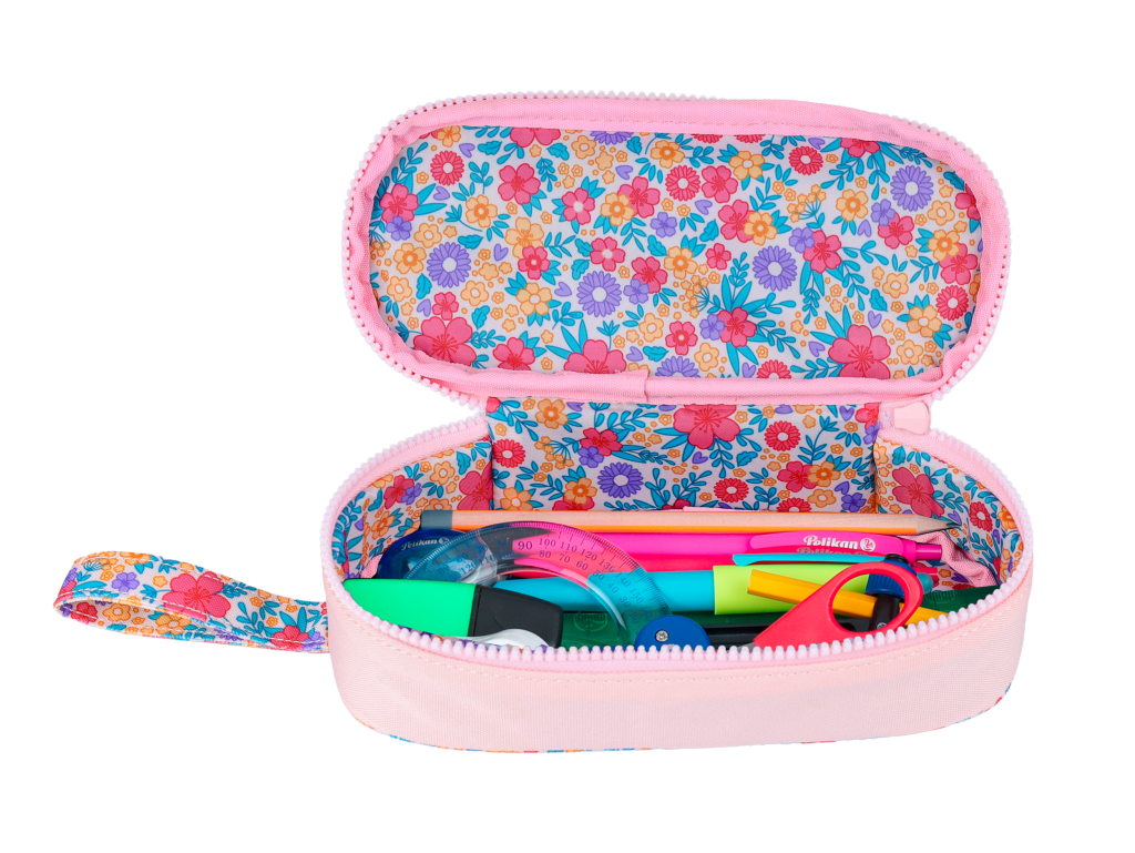 Penál Oxford Flowers s odolnou polyesterovou podšívkou je ideální do školy i na kroužky. Velká kapsa na zip (23×10×6,5 cm) pojme všechny školní potřeby. Barevný design usnadní hledání.