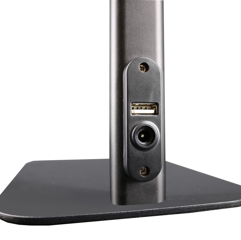 LED 2046 lum, 19 W, 108 lm/W, 85 CRI, 6500 K, 50 000 hod, 2400 lux, dálkové dotyk. ovládání, nast. Intenz. jasu a barvy světla, paměťová funkce, USB port pro nabíjení mob., 4 funkce, hliník, ABS plast a silikon