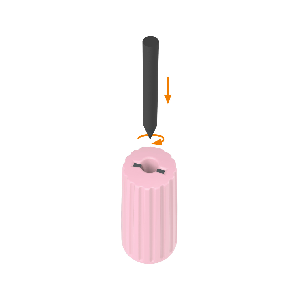 pro jednoduchou a přesnou práci, s ochranou hrotu a tuhy, k rukojeti jsou 3 náhradní tuhy, s ořezávátkem na tuhy, růžovo-fialová