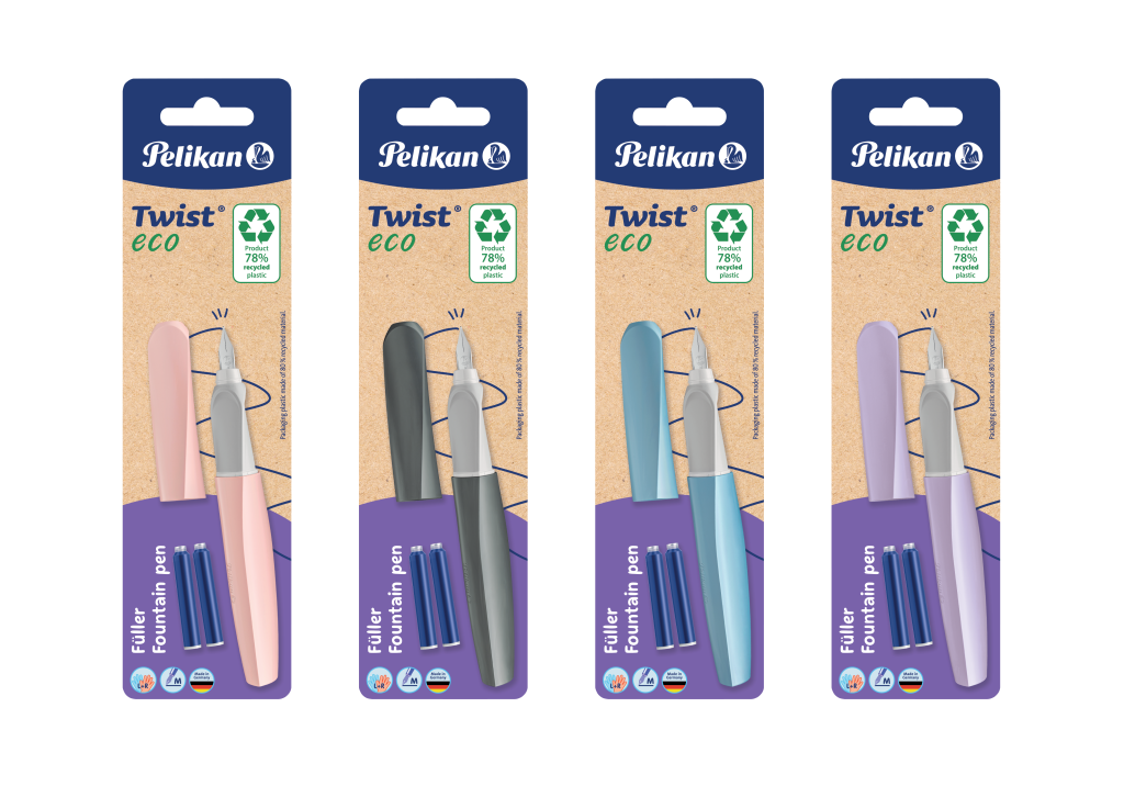 mix s polygonovou strukturou, hrot z nerezové oceli velikosti M, vhodné pro leváky i praváky. Vyrobeno z 78% recyklovaného plastu. 4 barvy. Balení na blistru