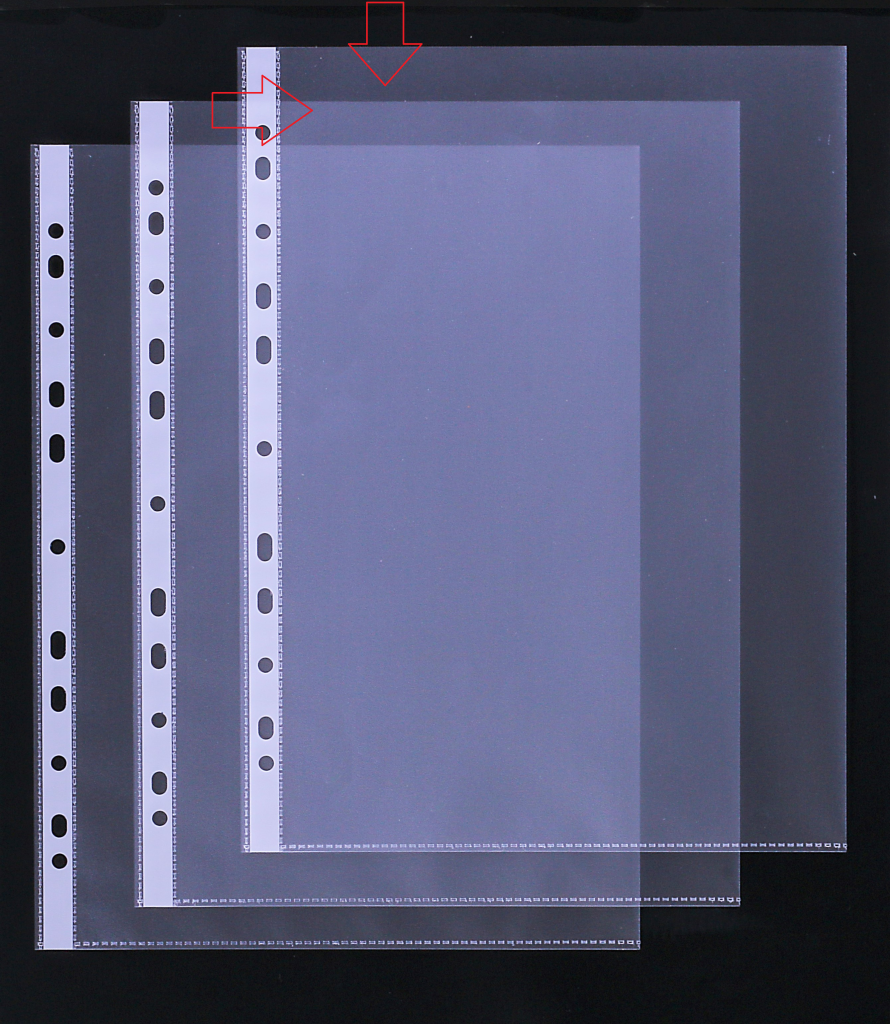 s barevným euroděrováním a barevným rozlišovacím proužkem po straně, 70 my, čirý - hladký, 10xčerný proužek, 10xmodrý proužek, 10xzelený proužek,…