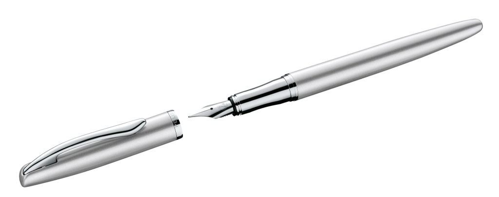 typická spona ve tvaru zobáku Pelikan je odpružená, a proto obzvláště robustní. Plynulé zásobování inkoustem je zajištěno náplněmi. Hrot M. V boxu.