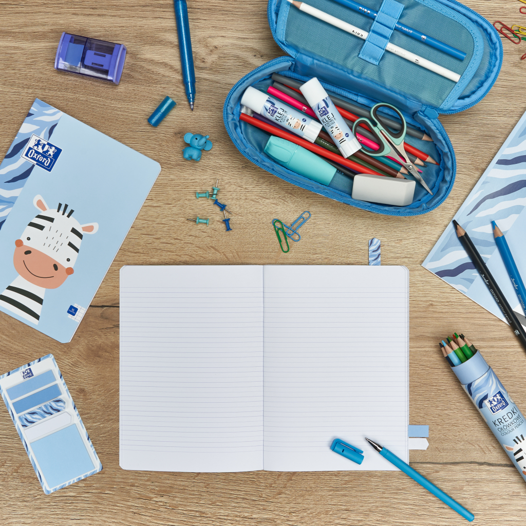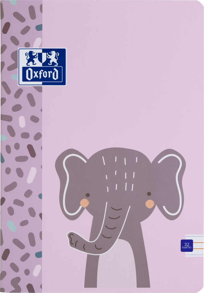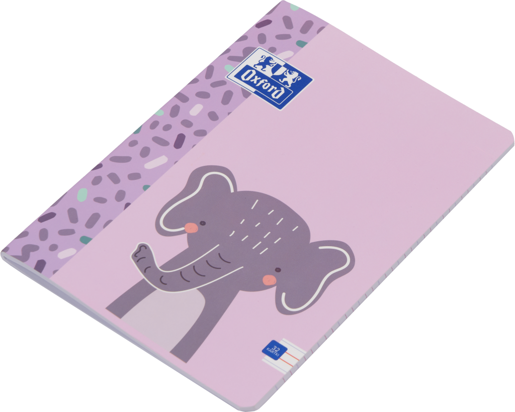 Sešit Oxford Kids A5/32 listů,dvoubarevně dvojitě linkovaný. Povrch potažený Soft Touch fólií je sametově hebký a příjemný na dotek. Certifikát PEFC. Mix motivů, Optik Paper