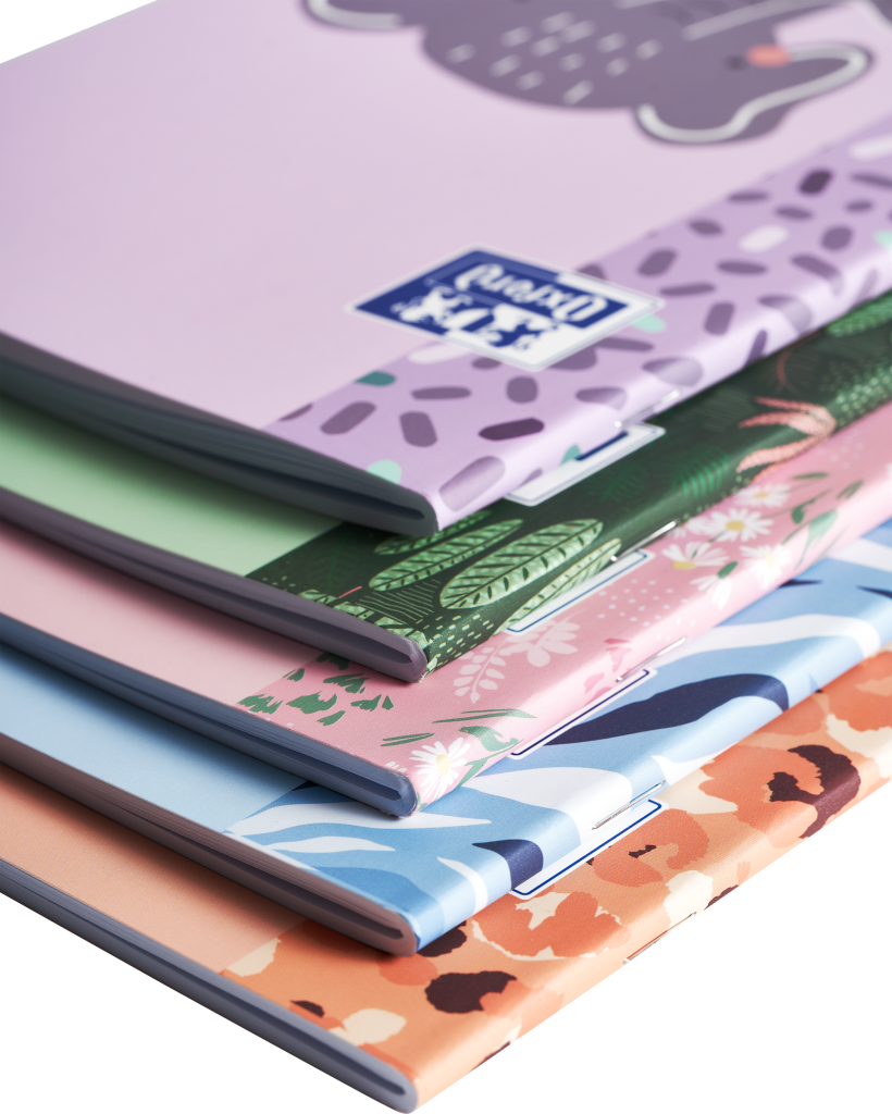 V šité vazbě. Měkké, vysoce odolné laminované desky se Soft Touch povrchem a s logem značky Oxford. Mix pastelových barev, Optik Paper