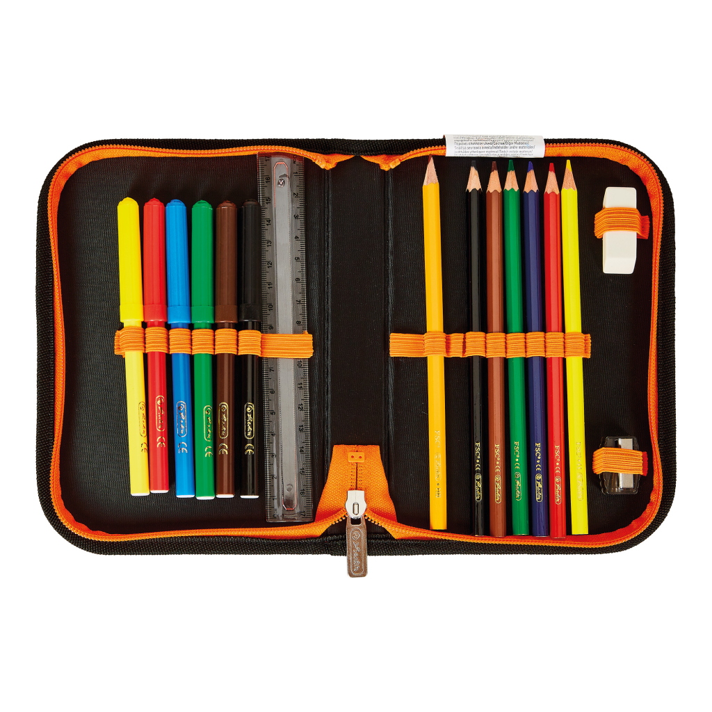 36 x 28 x 21 cm, anatomicky tvarovaná polstrovaná prodyšná záda, široké nastavitelné ramenní popruhy, hrudní popruh, přední kapsa na zip, dvě boční kapsy s elastickými pásky, zámek reflexní pruhy Oralite, 2 odznáčky na suchý zip, stabilní spodní deska s nožičkami, zavírání Click lock s odrazkou, hmotnost 750 g, Objem: 15l, voděodolná, bez PVC, výbava: penál 16 dílů: 6 fix, 6 pastelek, tužka, ořezávátko, guma, pravítko, sáček na cvičky, kulaté pouzdro
