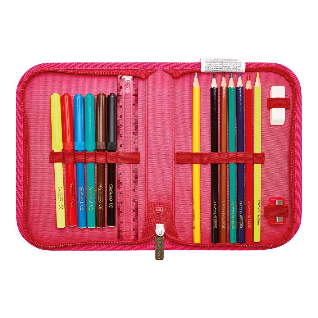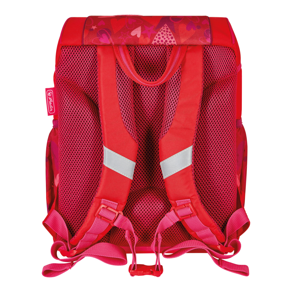 36 x 28 x 21 cm, anatomicky tvarovaná polstrovaná prodyšná záda, široké nastavitelné ramenní popruhy, hrudní popruh, přední kapsa na zip, dvě boční kapsy s elastickými pásky, reflexní pruhy Oralite, 2 odznáčky na suchý zip, stabilní spodní deska s nožičkami, zavírání Click lock s odrazkou, hmotnost 750 g, Objem: 15l, voděodolná, bez PVC, výbava: penál 16 dílů: 6 fix, 6 pastelek, tužka, ořezávátko, guma, pravítko, sáček na cvičky, kulaté pouzdro