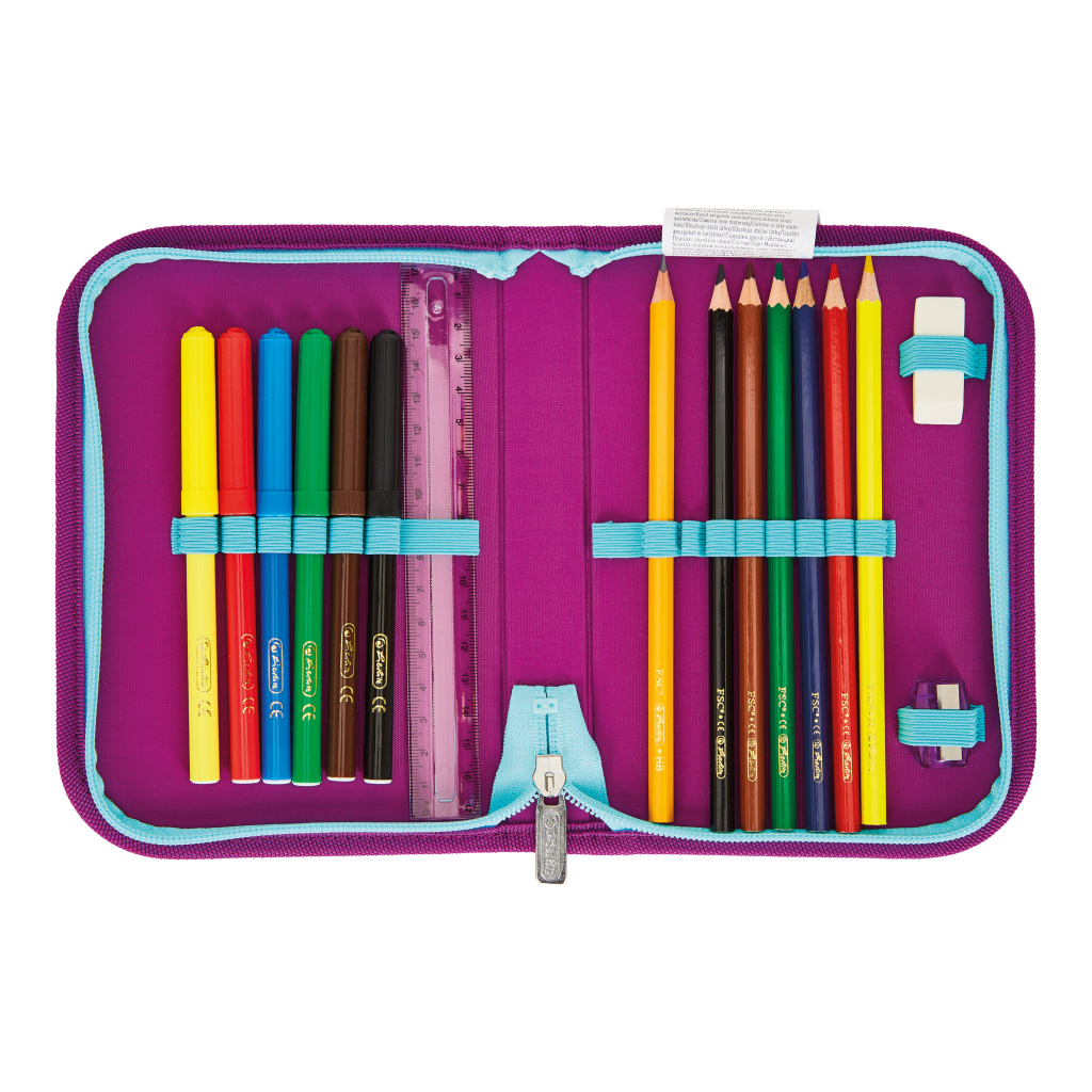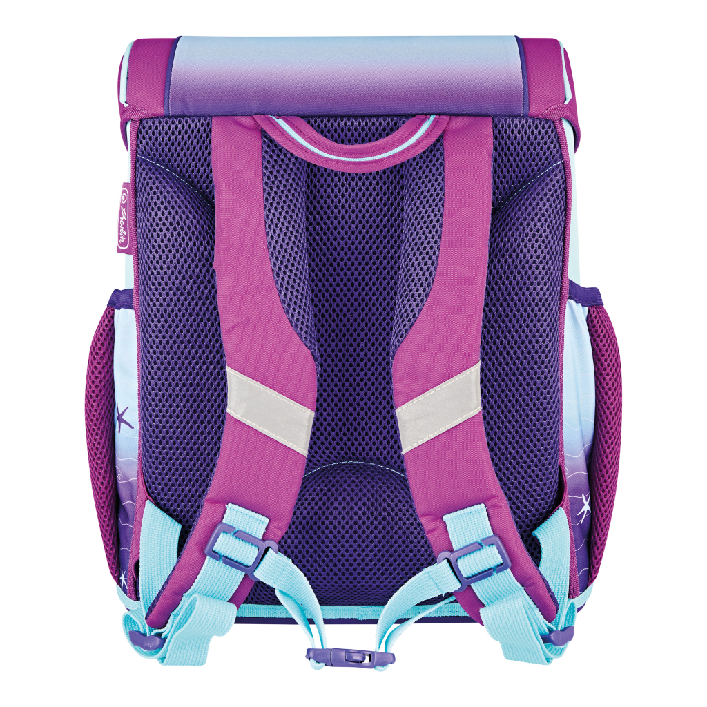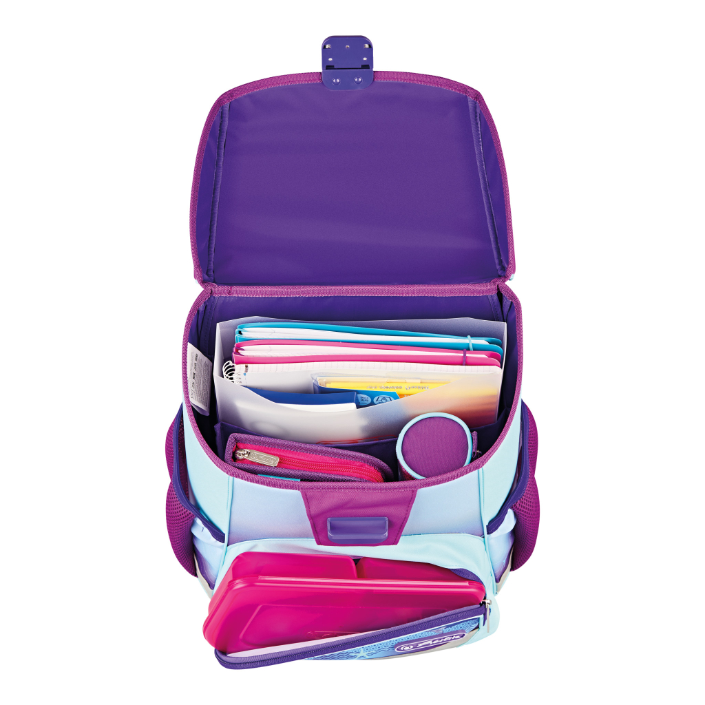 37 x 31 x 22 cm, ergonomicky tvarované a prodyšné polstrování zad, nastavitelné ramenní popruhy, výškově nastavitelný hrudní pás, hlavní kapsa s prostorem pro knihy, boční kapsy s elastickými pásky, přední kapsa na zip, stabilní spodní deska s nožičkami, pohodlná rukojeť, zavírání Click lock s odrazkou, reflexní materiály Oralite, Hmotnost 950 g, objem 15 l, voděodolná, bez PVC, Výbava: penál 16 dílů: 6 fix, 6 pastelek s certifikací FSC, tužka, pravítko, guma, ořezávátko, sáček na cvičky, kulaté pouzdro