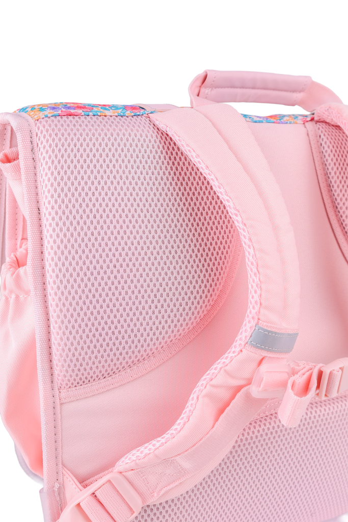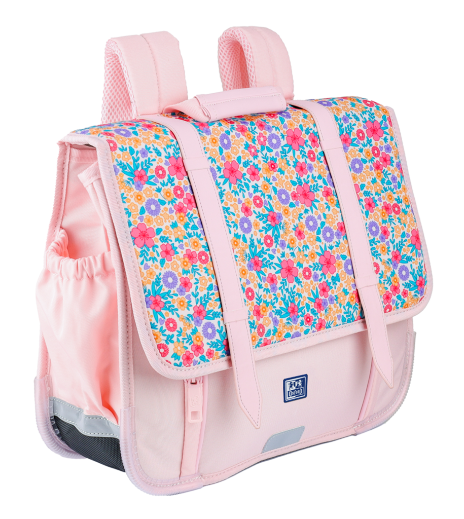 Školní batoh Oxford Flowers 36 cm z recyklovaného polyesteru je ideální pro 1.–5. třídu. Pojme A4 sešity, učebnice i penál. Má polstrovaná záda, nastavitelné popruhy, reflexní prvky, jmenovku a kapsu na drobnosti.