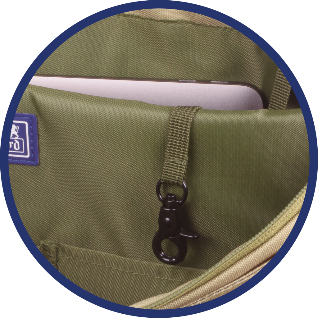 31x38x12. Vnitřní organizéry. Speciální polstrovaná přihrádka na počítač nebo tablet s logem. Boční kapsa s gumičkou na lahve nebo nápoje, snadno dostupná. Zapínání na zip.
